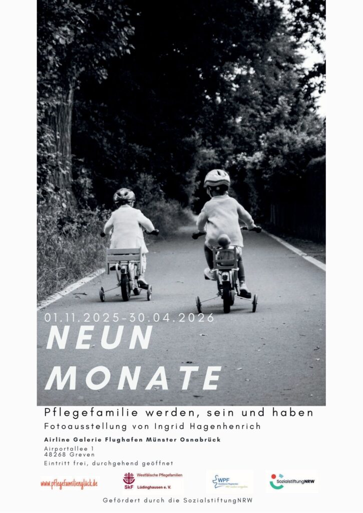 Eine Midissage zu der Fotoausstellung „Neun Monate“ über das Wesen der Pflegefamilie. Um 18 Uhr in der Airline Galerie des Flughafens FMO Münster/Osnabrück. Eintritt frei, offen für Alle.
